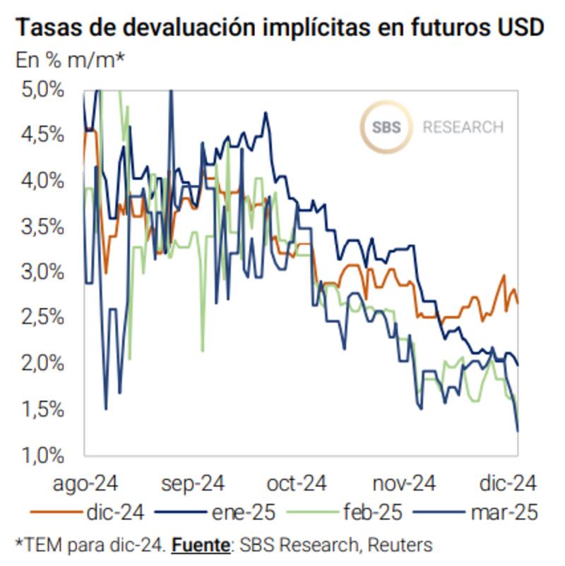 El mercado tiene incorporado una expectativa de reducción del crawling peg para los primeros meses del 2025, en particular para febrero y marzo.