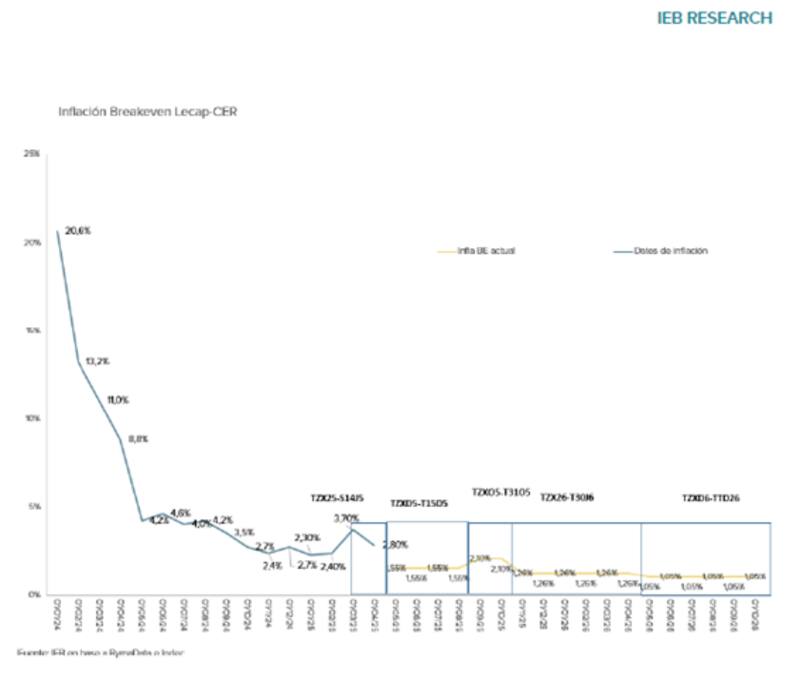 "Creemos que las tasas nominales bajarán sólo en la medida en que las expectativas de inflación bajen considerablemente, lo que implicaría que las tasas reales sigan altas. En este marco, y con la inflación implícita alineada con nuestras estimaciones, vemos valor en las Lecaps y Boncaps", dijo.
