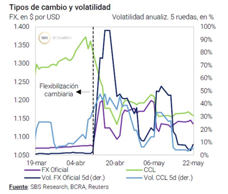 A su vez, la salida del cepo derivó en un colapso de la volatilidad cambiaria y en la que el tipo de cambio busca su precio de equilibrio dentro de la banda, pero sin provocar disparadas.