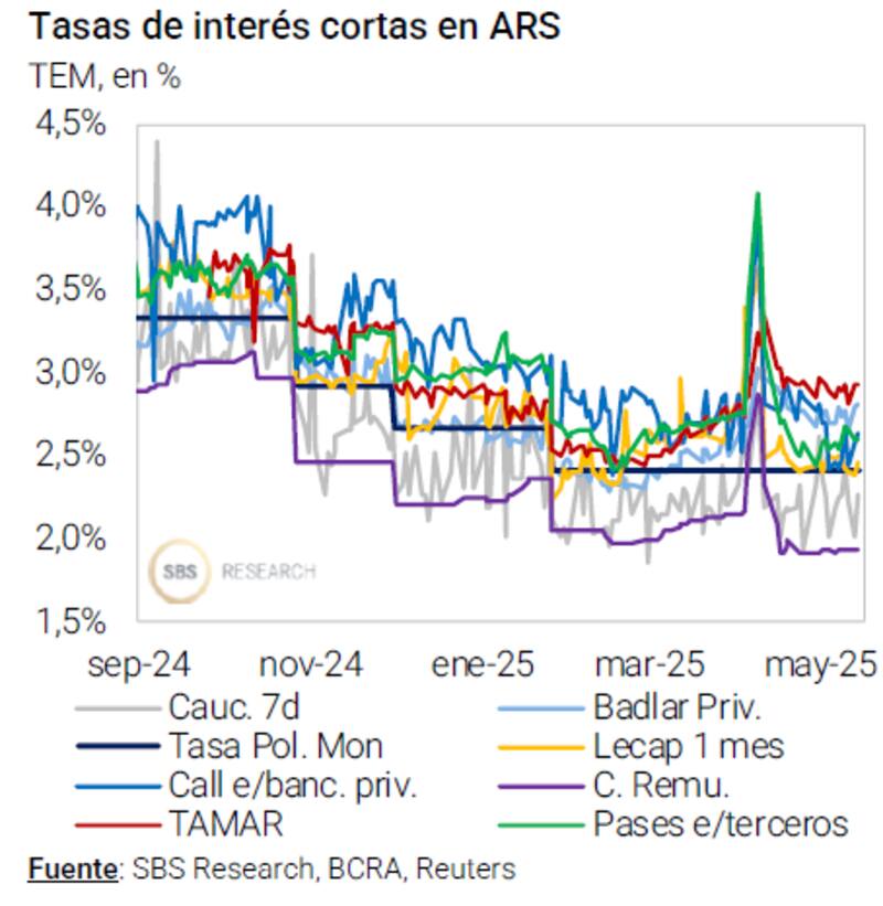 "Desde la salida del crawling peg, el gobierno buscó hacer más atractivas las inversiones en pesos - lo que favorecen a contener los riesgos sobre el tipo de cambio (que ahora flota). En este sentido, y dado que el objetivo de desacelerar la inflación sigue más firme en medio del escenario electoral, no vemos que el gobierno tenga incentivos para cambiar la estrategia en el corto plazo", dijeron.