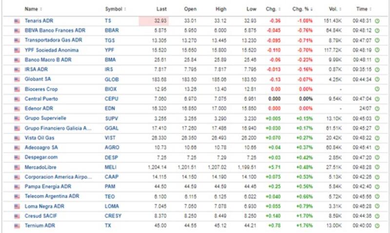 Las acciones inician el martes en forma mixta. Entre las que mas bajan se destacan Tenaris, BBVA, TGS, YPF y Banco Macro, que retroceden entre 0,2% y 1%. Del lado ganador, se encuentran Ternium, Cresud, Loma Negra y Telecom, ganando entre 1,7% y 0,8%.