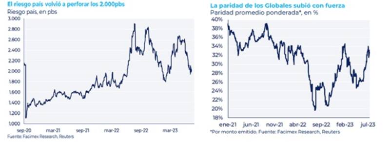 Pese a estos desequilibrios, los bonos subieron y dicho rally permitió que el riesgo país pueda ubicarse por debajo de los 2000 puntos.