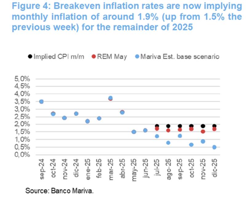 Desde Research Mariva resaltaron que esta expectativa de inflación supera su escenario base, que proyecta una inflación anual del 21,3% para 2025, en comparación con el 29% implícito en el mercado.
