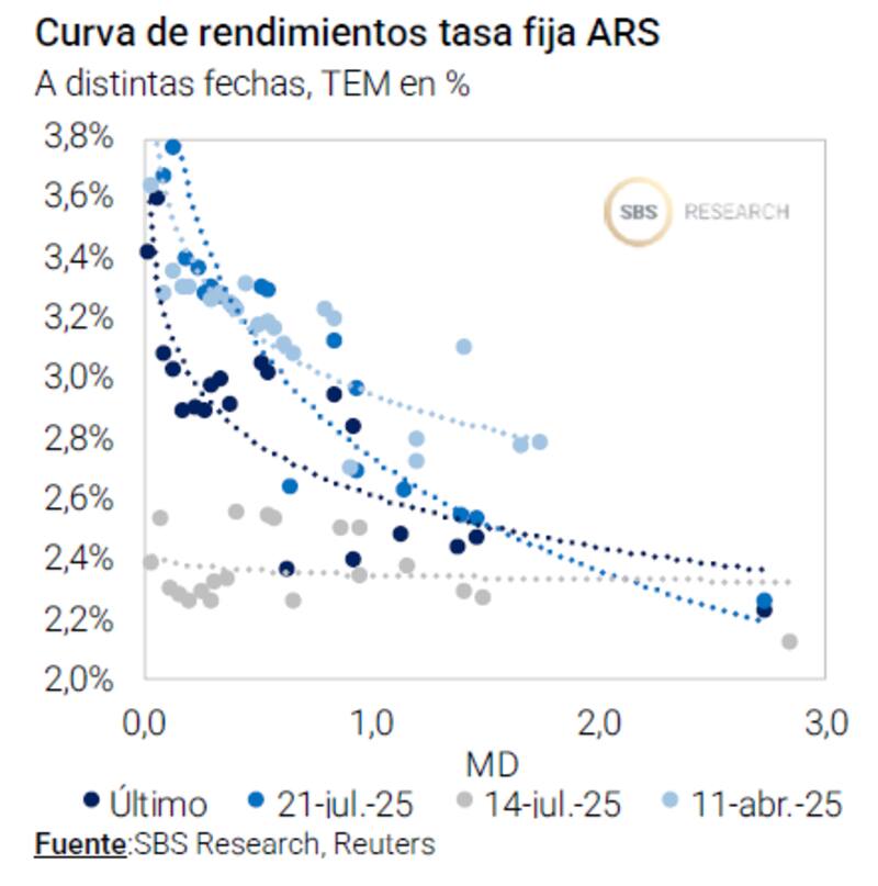 "Creemos que las tasas reales elevadas seguirán limitando presiones sobre el tipo de cambio en el corto plazo, por lo que preferimos posicionarnos en la parte corta de la curva de Lecaps, en particular la Lecap a fin de septiembre (S30S5), detalló.