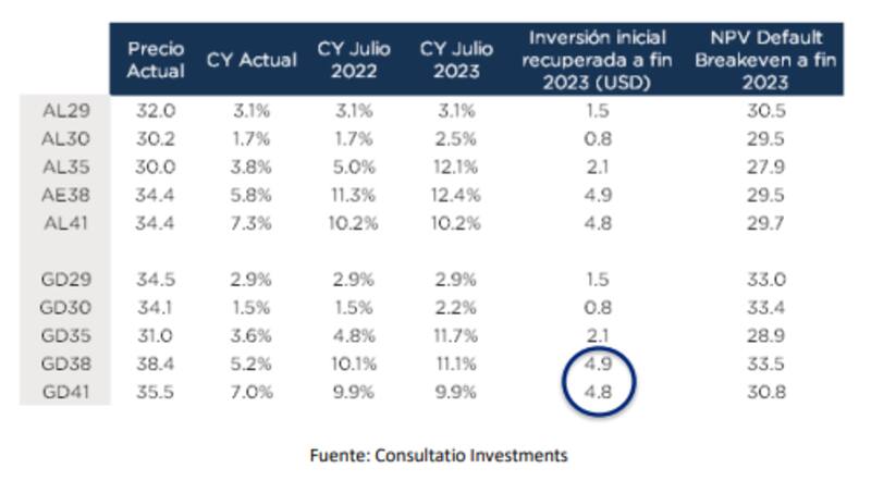 Por otro lado, agregaron que también ven valor en el bono a 2038 y afirmaron que "a la larga, el Global 2038 terminará convirtiéndose en el bono preferido del mercado ya que pasará a devengar el cupón más alto a partir de julio".
