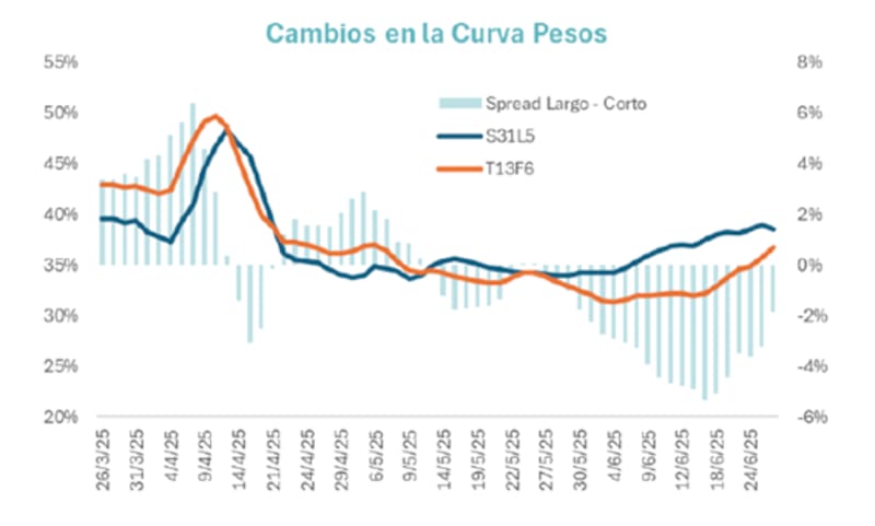 Las curvas en pesos se han desplazado al alza como resultado de la falta de pesos en la economía combinada con un aumento en la demanda de liquidez.