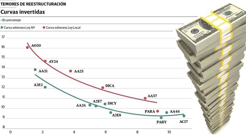 “Como referencia, el bono con vencimiento octubre 2020 del Gobierno Nacional Ley Local hoy se encuentra en el orden del 16% de Tir y el bono PAR con vencimiento 2038, también Ley Local, se encuentra en un 9.6%. En una curva normal, esta distancia debería ser mucho más acotada e incluso inversa a medida que avanzamos en términos de duration. Sin embargo, los riesgos de una reestructuración en la parte corta de la curva afecta la misma , agregó.