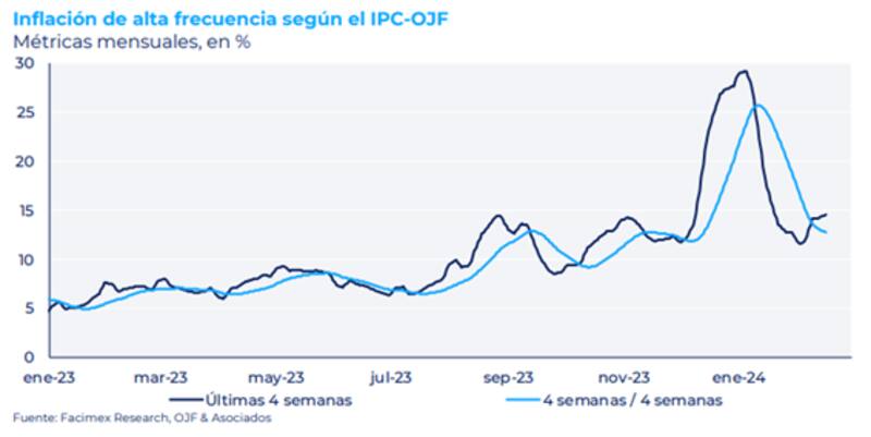 Los analistas de Facimex Valores publicaron un informe en el que, en base a estos datos, revisaron a la baja su proyección de inflación para el mes de febrero en niveles de 15% mensual.