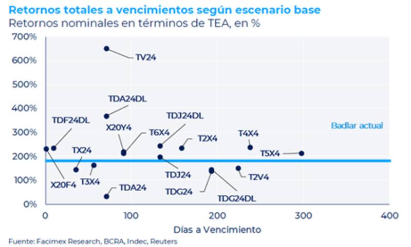 Desde Facimex Valores agregaron que dentro de la curva CER, priorizan la Lecer a mayo (X20Y4) y el Boncer a mayo (T6X4).