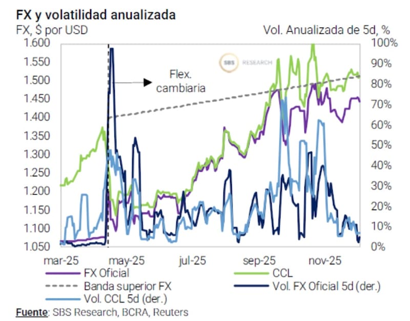 “Este desempeño puede explicarse por distintos factores, entre ellos el desarme de coberturas por parte del Gobierno (incluyendo pagos de Lelink y reducción de posiciones en el mercado de futuros), lo que contribuyó a mantener al dólar oficial en niveles cercanos al techo de la banda cambiaria”, explicó Barrera.