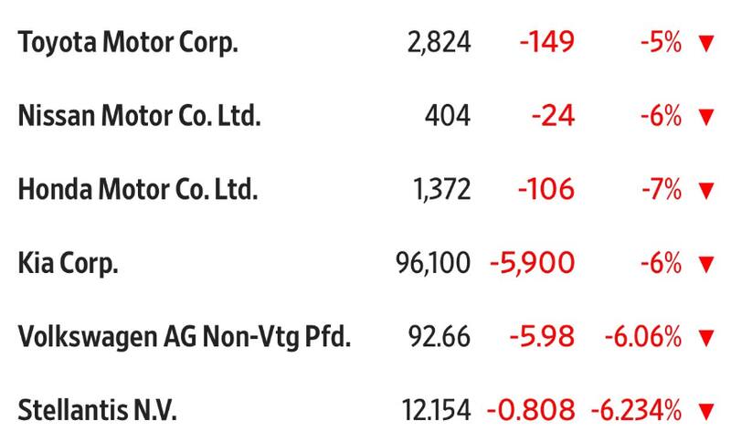 Las acciones de los fabricantes de automóviles europeos cayeron, con Volkswagen AG y Stellantis NV perdiendo más del 5%.