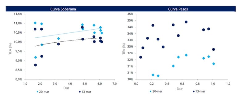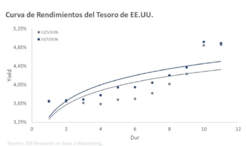 En medio de la guerra, la curva soberana tuvo un desplazamiento al alza, es decir, los bonos cayeron y las tasas subieron.