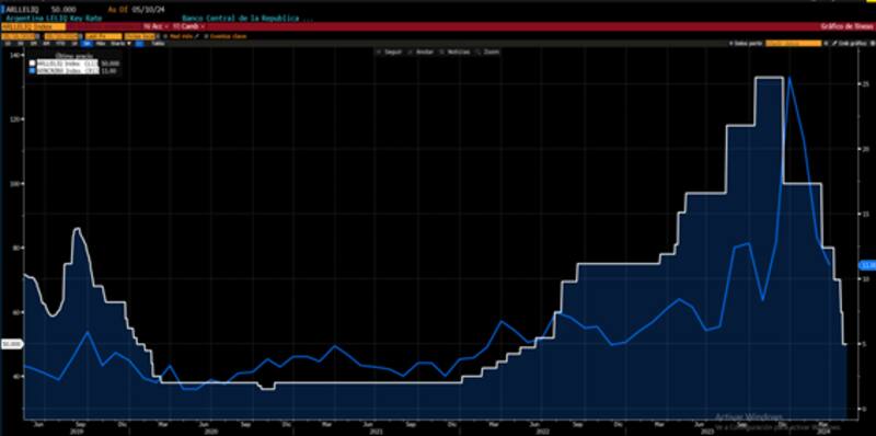 La baja de tasas se dio en un contexto en el que la inflación se desplomó, pasando de 25% en diciembre al 11% en marzo. Se espera que caiga al digito en abril.