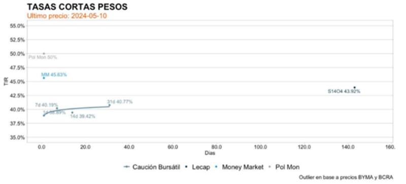 "El mercado continúa descontando baja de tasas. El BCRA ya lleva 4 cortes consecutivos de tasas, llevándola de 100% a 50%, perforando los retornos de los instrumentos a tasa fija. De cara a la continua baja de tasas y a la tendencia decreciente de la inflación los bonos cortos a tasa (Lecap), tienen un retorno efectivo mensual del 3,5%, mientras que la inflación viaja al 8%", señalaron.