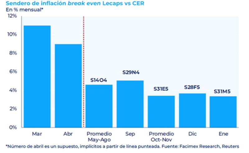 El mercado tiene incorporado una inflación del 8% para abril y de 4,5% entre mayo y agosto, saltando al 6,5% en septiembre y del 2,7% entre octubre y diciembre.