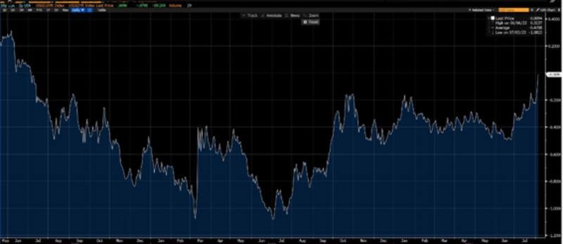 "La actividad económica a nivel global desacelera. El mercado laboral de EEUU muestra un deterioro. En ese contexto, el diferencial entre las tasas de los bonos del tesoro a 2 años y 10 años está cerca de ponerse positiva a la expectativa de un ciclo de baja de tasas más agresivo por una potencial recesión", indicó.