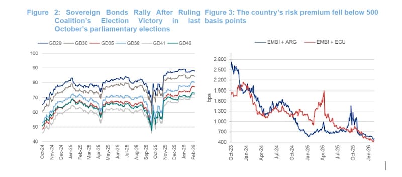 “Seguimos favoreciendo la exposición a activos en moneda dura, apoyados en la acumulación sostenida de reservas internacionales y en la expectativa de una compresión del riesgo país”, afirmaron.