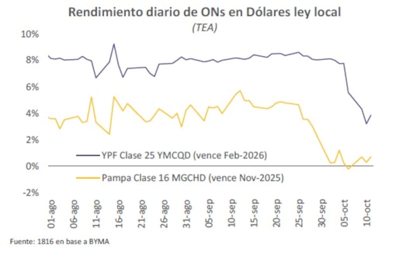 Los analistas de la Consultora 1816 detallaron que los bajísimos rendimientos de las obligaciones negociables hard dólar locales reflejan una creciente demanda de activos dolarizados por parte de inversores locales que, por restricciones cruzadas con el MULC, no pueden operar contado con liquidación.