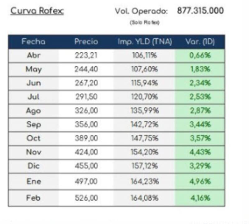 Además, detalló que en la última semana, las TEA promediaron +165% a lo largo de la curva y hoy las mismas se ubican cercanas a +190%.
