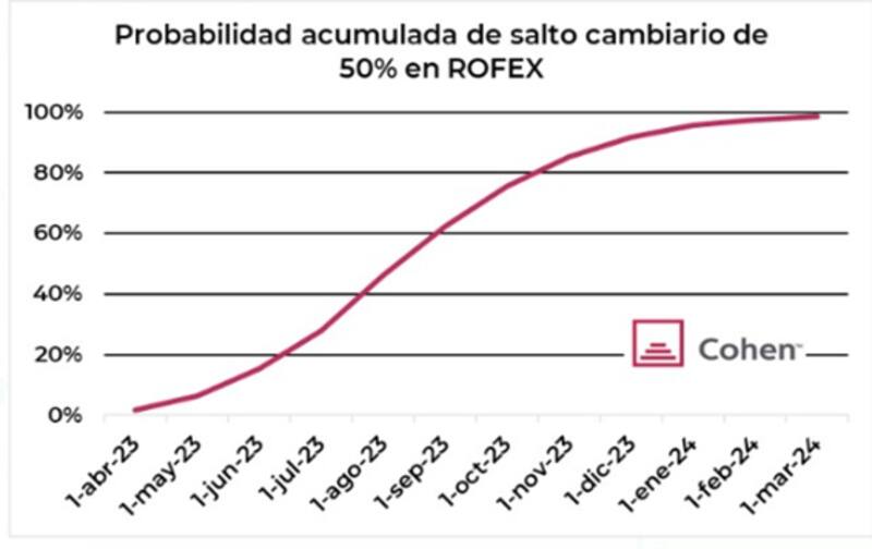 De hecho, con estos niveles de devaluación esperada dentro de la curva Rofex, las probabilidades de ver una devaluación del 50% en el corto plazo se acrecentaron fuertemente.