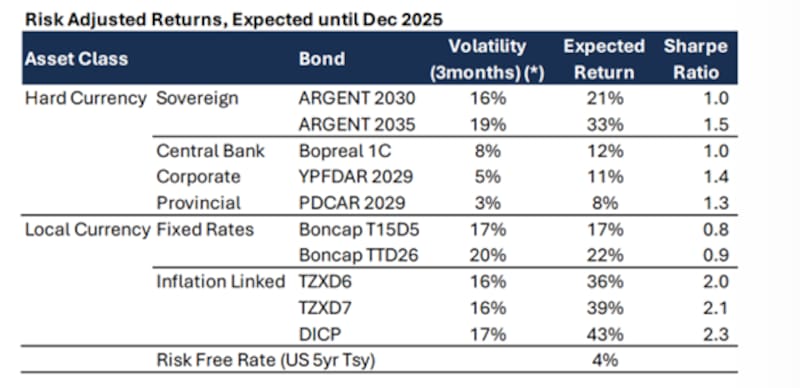 "Los cálculos sobre las inversiones en pesos muestran el claro atractivo de tomar duration en la curva de tasa fija bajo este nuevo esquema, con el piso a los retornos siendo atractivo a lo largo de la curva de Lecap y Boncap para tipos de cambio de entrada de hasta $ 1250. Naturalmente, en la medida en que el tipo de cambio se acerque más al piso que al techo de la banda, como esperamos, los retornos efectivos en dólares serán aún mayores", dijeron.