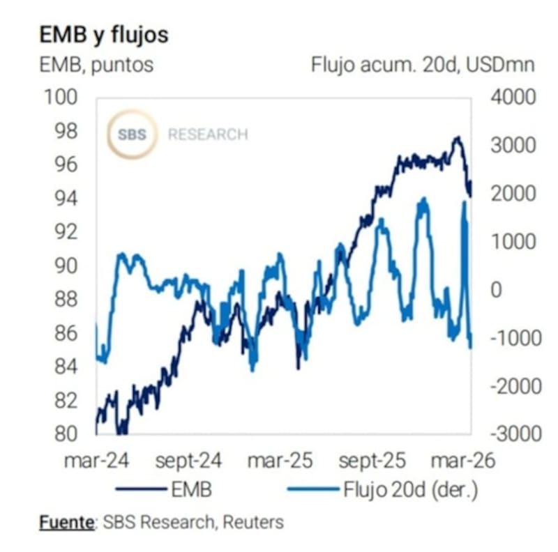 Juan Manuel Franco, economista jefe de Grupo SBS, advierte que los flujos a emergentes sufrieron la volatilidad internacional tras el estallido de la guerra en Medio Oriente, con una caída para el ETF de bonos emergentes (EMB) de cerca del 3% desde comenzado el conflicto.