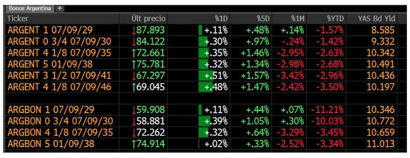 En medio de la baja de los bonos, la curva soberana argentina se desplazó al alza y los rendimientos vuelve a acercarse al 10%.