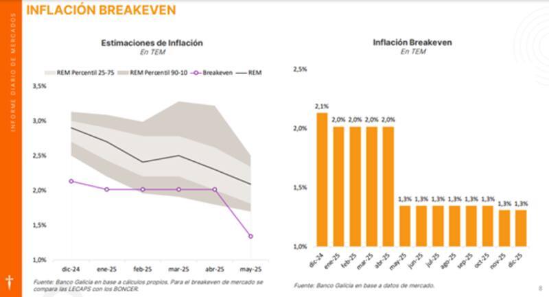 Además, los break even de inflación entre los títulos CER y tasa fija están incorporando una expectativa de mayor desinflación.