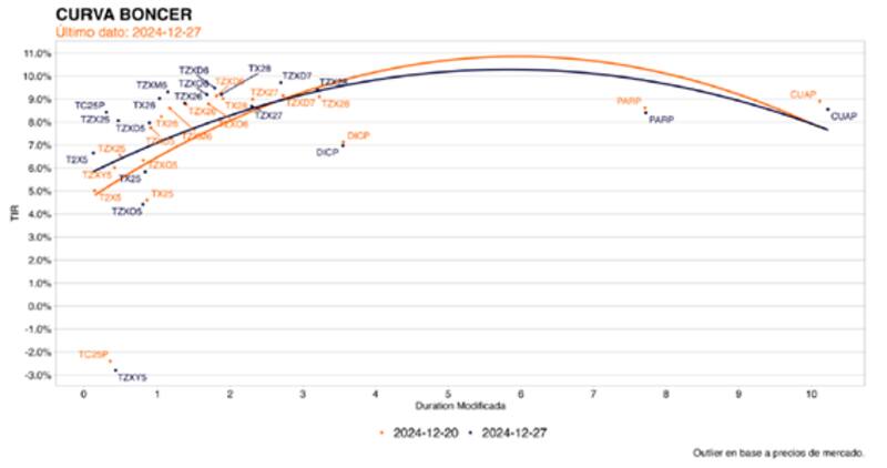 "Los breakeven de inflación estiman un IPC en línea con el presupuesto 2025. De esta manera, si bien puede quedar una compresión adicional del tramo largo dado que opera con una TEA en torno a 32%, la compresión es cada vez menor y necesita que los CER sigan comprimiendo", indicaron.