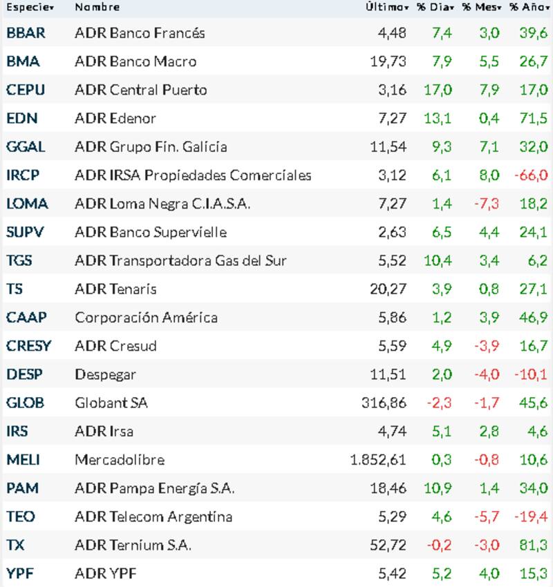 FUERTES SUBAS EN ADR