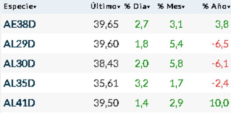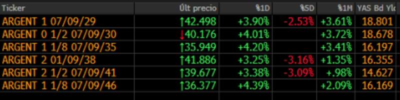 Al igual que sucedió con acciones, las subas del segmento soberano también venían siendo más importantes, pero se moderaron con el transcurso de la tarde.