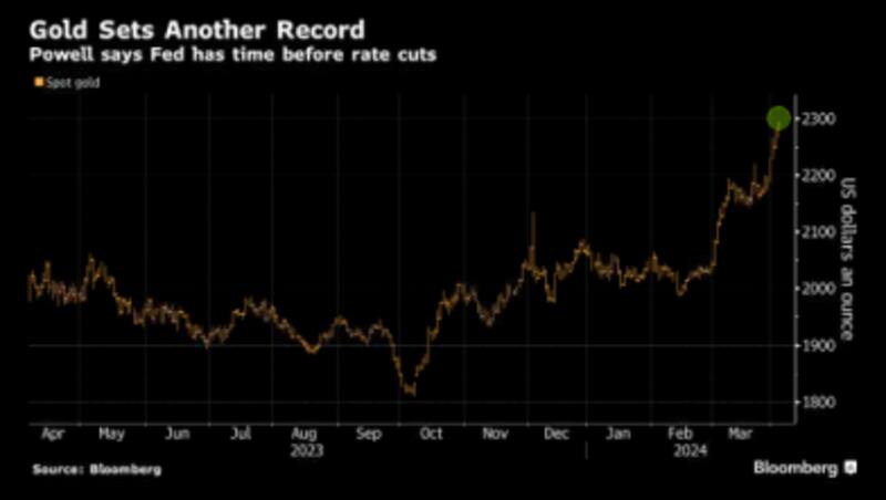 El oro subió a otro récord después de que el presidente de la Reserva Federal de los EE.UU., Jerome Powell, reiterara la probabilidad de un sendero de reducción de las tasas de interés "en algún momento de este año".