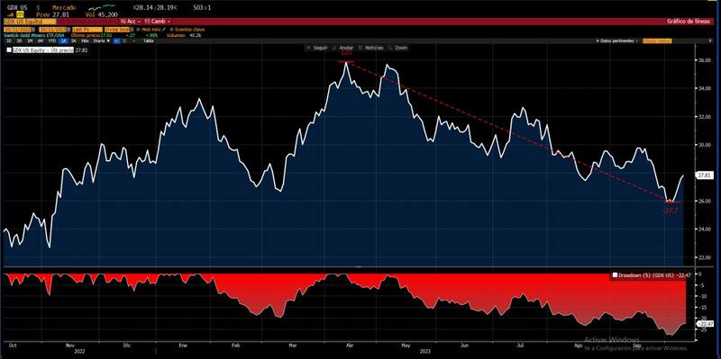 Este es el caso de las mineras de oro, que se vieron afectadas por la pérdida y que muestran descensos de 22% en promedio, medido por el índice de mineras (GDX).