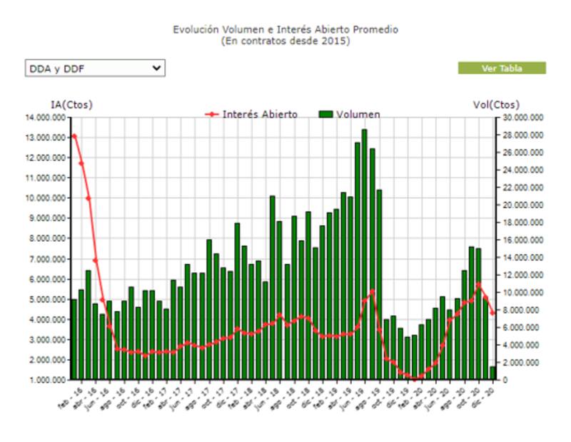 El interés abierto en Rofex a finales de noviembre fue de u$s 5086 millones y, dado que hay muy pocos jugadores vendiendo dólares, se estima que prácticamente toda la posición vendida le corresponde al BCRA. Aun así, en el ultimo mes se registra una contracción del interés abierto ya que en octubre había alcanzado niveles de u$s 5700 millones.