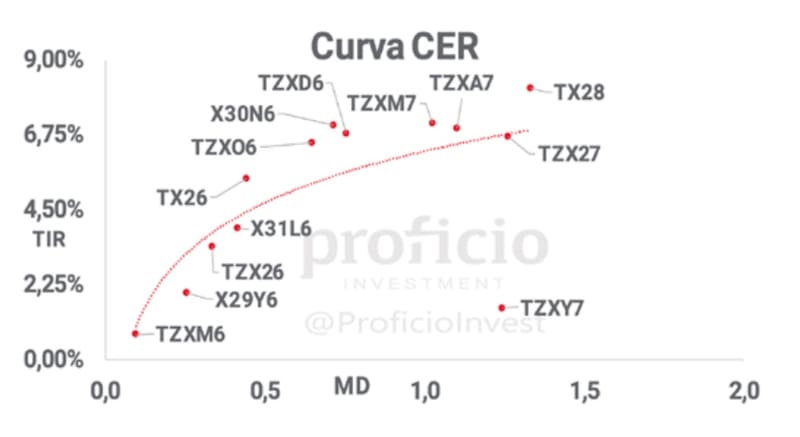 La curva CER opera con tasas reales en niveles debajo del 10% en toda la curva, cuando antes de las elecciones operaba por encima del 20% en casi toda la curva.