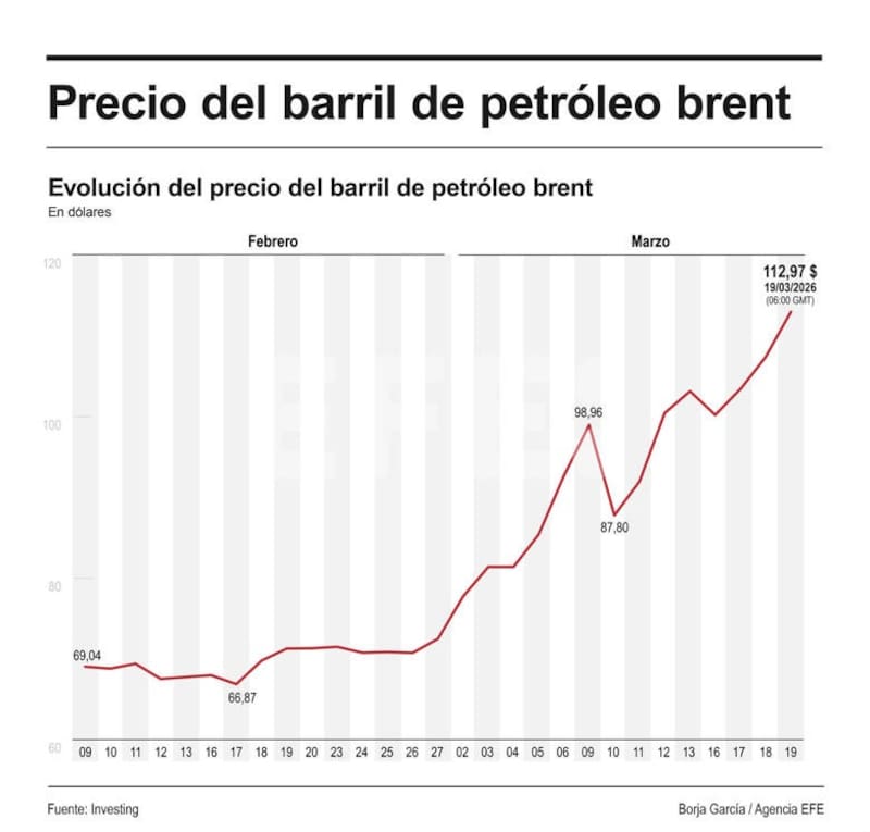 Los precios del petróleo volvieron a registrar un nuevo aumento. El barril de Brent llegó a la zona de los u$s 112, después de que Irán ejecutara ataques contra diversas instalaciones energéticas en Oriente Medio.