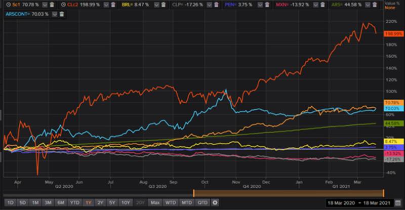 Un escenario favorable para las materias primas debería imprimir una buena dinámica para las monedas de emergentes y en particular de las monedas de Latinoamérica. Sin embargo, esto no está ocurriendo, al menos hasta ahora. Las causas para entender la falta de fortaleza en las monedas de la región se debe a cuestiones sanitarias, fiscales y económicas.