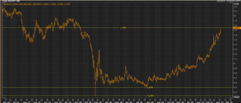 Además de la cuestión sanitaria, desde el mercado se menciona la dinámica de tasas de interés internacionales que se encuentran generando desequilibrios en las monedas de la región. La tasa estadounidense a 10 años alcanzó 1,74% esta semana, su mayor nivel desde el inicio de la pandemia.