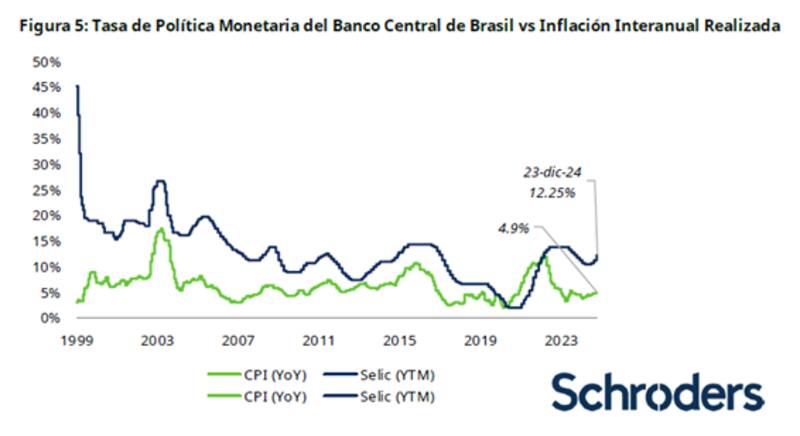 Los analistas de Schroders agregaron que la dinámica del real en 2024 ha sido muy negativa, siendo el deterioro fiscal determinante para que ello ocurriera.