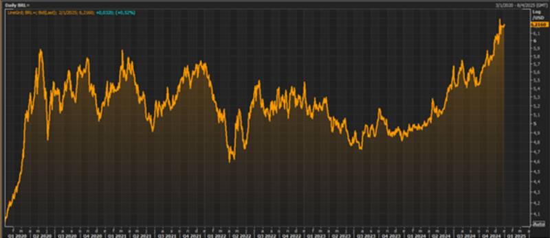 "Si bien la debilidad del real se observó a lo largo de todo el año, la mitad de la suba del tipo de cambio (de 5,60 a 6,20 reales) se dio posterior a los anuncios fiscales de noviembre pasado. Los economistas esperaban un recorte de gastos en línea con lo anunciado (una baja de 0,3% del PBI tanto en 2026 como en 2027), pero lo que no se esperaba era una suba del mínimo no imponible para el pago de Ganancias", explicaron desde Schroders.