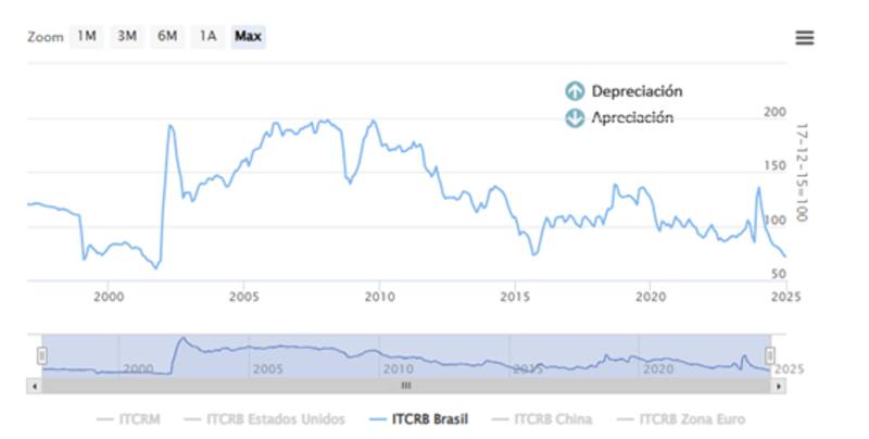 De hecho, hoy el tipo de cambio real multilateral con Brasil se ubica en mínimos desde 2001.