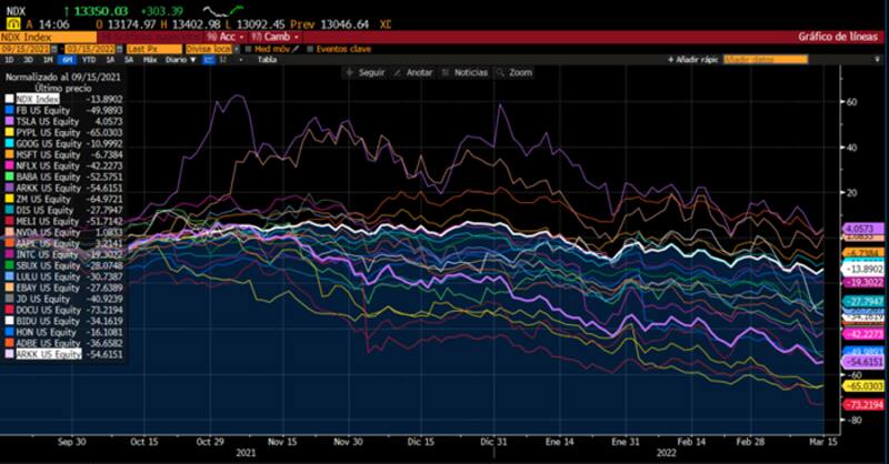Luego, la gran mayoría de las acciones que integran el Nasdaq, operan con bajas mayores al 14% en los últimos seis meses.