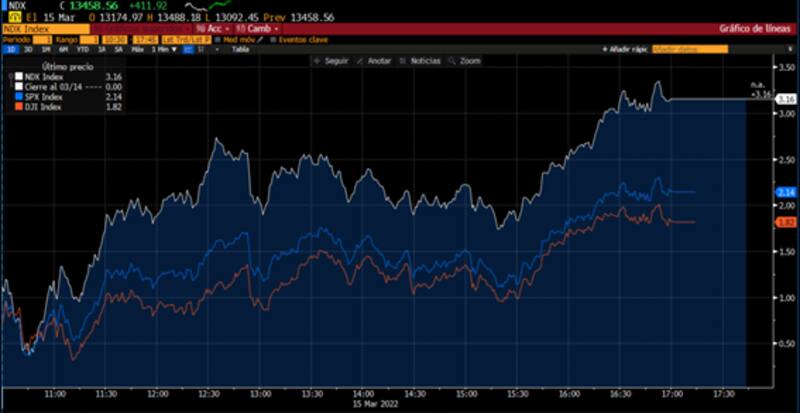 En los últimos días, el Nasdaq lidera las subas en Wall Street, con una ganancia del 3%, seguido por el S&P500 que suma 2,1% y el Dow Jones avanza 1,8%.