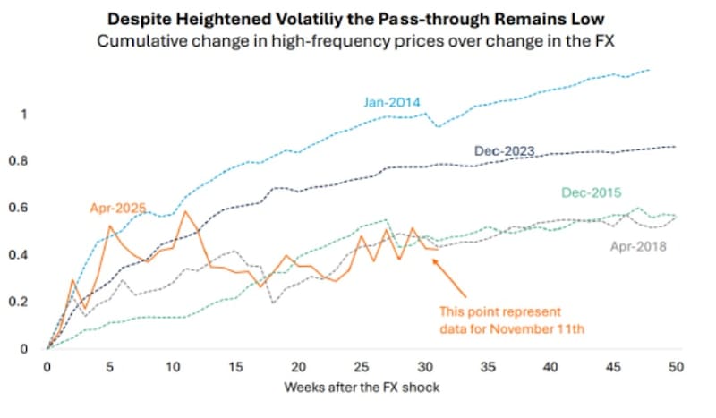 Uno de los mayores logros de la actual gestión es que, a pesar de la volatilidad cambiaria de los últimos meses, el traslado a precios ha sido limitado.