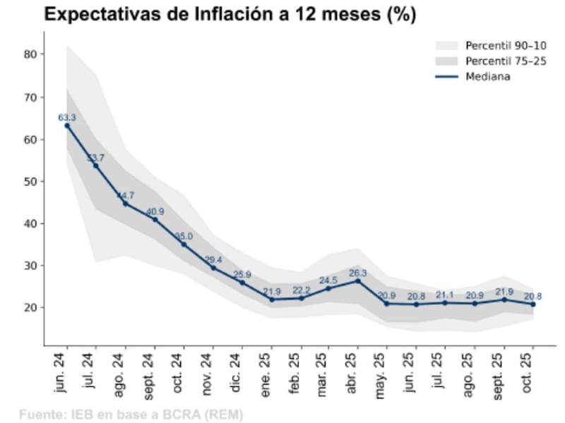 En general, se espera una inflación a 12 meses del 20,8%, siendo la más baja desde el REM de junio pasado.