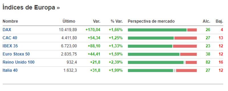 - El índice global de acciones MSCI sumaba 1,58%, ayudado por un avance generalizado en Europa y por pérdidas más leves en Asia.