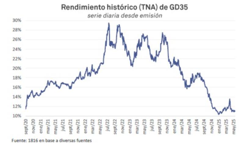 "Vemos potencial en los bonos y constructivos en cuanto a los Globales 2035 (10,9% TIR), por su capacidad de captar el mayor upside potencial ante una caída del riesgo país y dado que ofrece un rendimiento corriente del 6%, superior al 0,9% que ofrecen los Bonares y Globales 2030", dijeron.