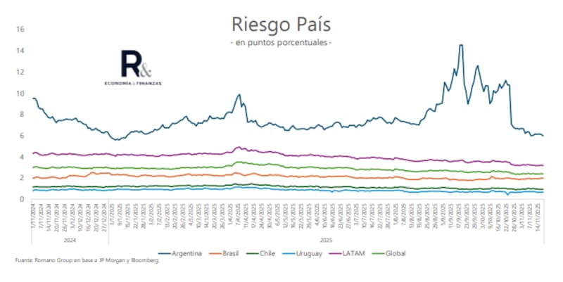 “El nivel actual, por encima de los 650 puntos, refleja que los inversores esperan señales más contundentes en tres frentes: crecimiento, financiamiento y normalización del mercado cambiario”, comentó.