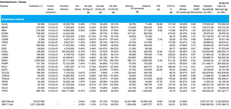 Por el lado negativo, Cresud cayó 3,26% y Corporación América perdió un 2,77 por ciento.