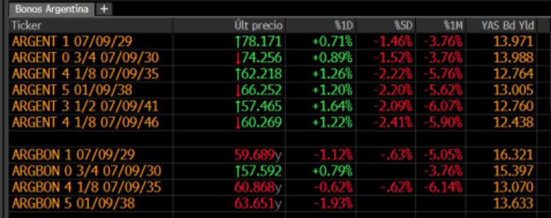 De esta manera, y tomando en lo que va del año, todos los bonos soberanos en dólares operan con pérdidas.